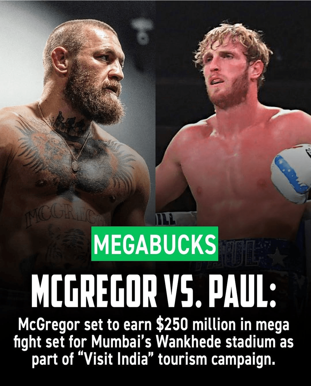 La leyenda de las MMA, Conor McGregor, y el popular youtuber y boxeador, Logan Paul, se enfrentarán en un combate de exhibición que promete ser uno de los eventos deportivos más mediáticos del año. La pelea, organizada por la familia Ambani, se llevará a cabo en el estadio Wankhede de Mumbai, India, como parte de la campaña turística "Visit India".