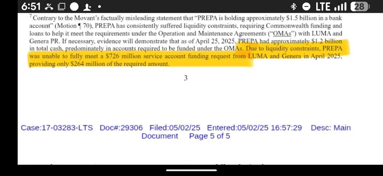 Gobierno admitió que no pudo pagar millones a LUMA y Genera por falta de liquidezEnergía|Oct 22, 2025