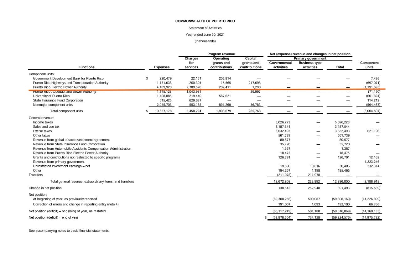 Según los estados financieros auditados del Gobierno de Puerto Rico para el año fiscal terminado el 30 de junio de 2021, la AEE reportó gastos por sobre $4,189 millones e ingresos operacionales de más de $2,789 millones, lo que representa un déficit neto de $1,191 millones. Parés relató que, durante su gestión en Hacienda, revisó personalmente ese informe y constató la magnitud de la pérdida.