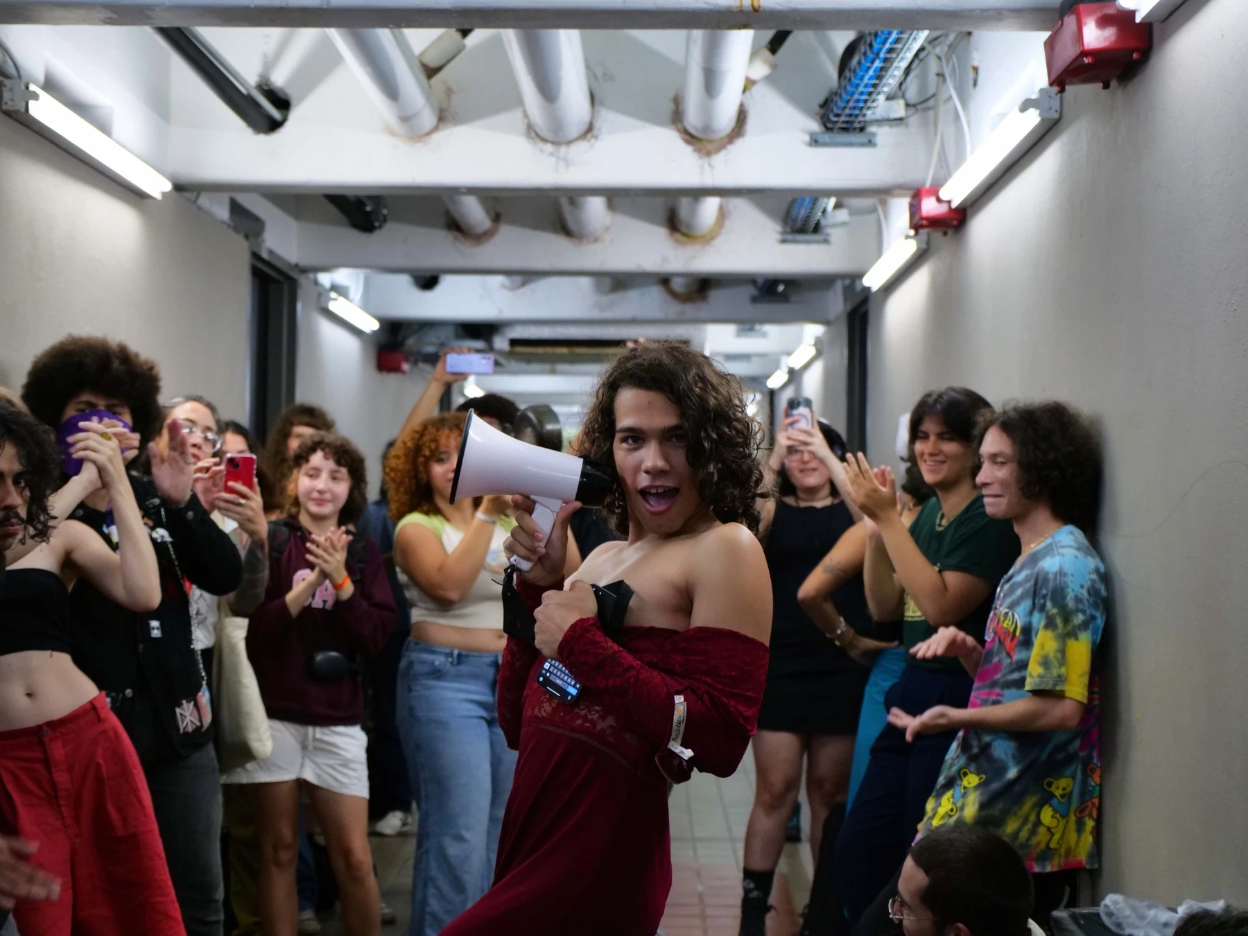 A pocos metros del lugar donde se desarrollaba la actividad, y ante la presencia de varios oficiales de seguridad privada, decenas de estudiantes y otros ciudadanos se manifestaron en un pasillo. Sus gritos retumbaron dentro del salón, interrumpiendo las presentaciones de los deponentes.