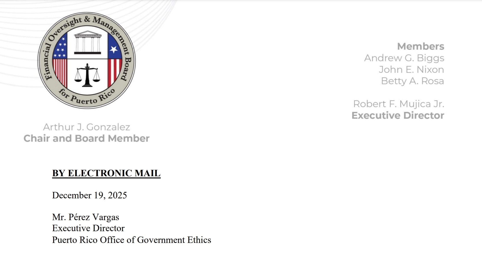 En entrevista telefónica, Pesquera Morales hizo referencia a esta y a otras comunicaciones relacionadas al proceso de otorgar el contrato de Grants Manager a la entidad que lograra la mejor puntuación a la hora de someterse al proceso de competencia.