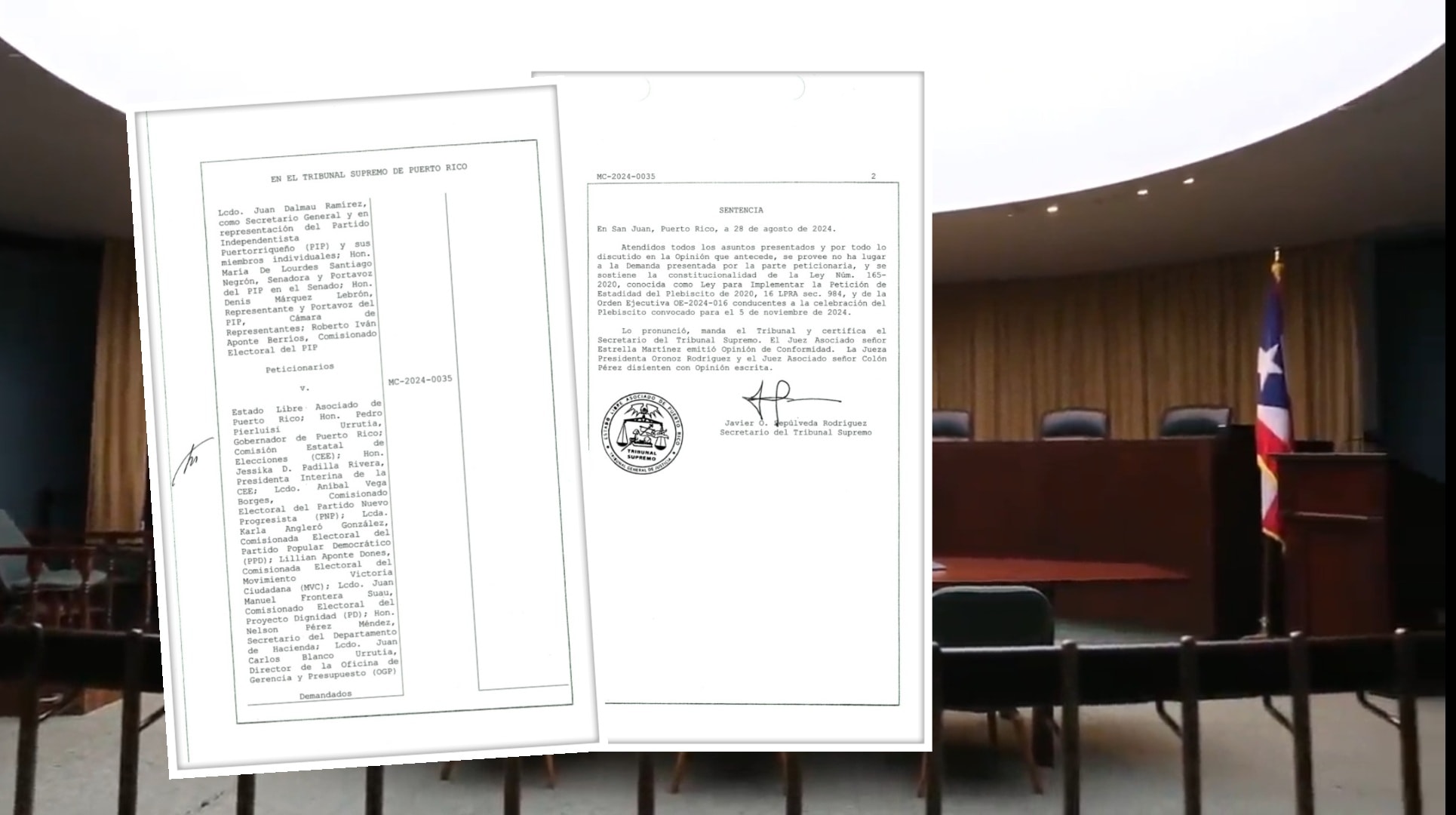 El Tribunal Supremo de Puerto Rico desestimó los reclamos presentados por el Partido Independentista Puertorriqueño (PIP) y sus representantes, quienes impugnaban la constitucionalidad de la Ley 165-2020 y la Orden Ejecutiva OE-2024-016 que convocan a un plebiscito durante las elecciones generales de Puerto Rico.