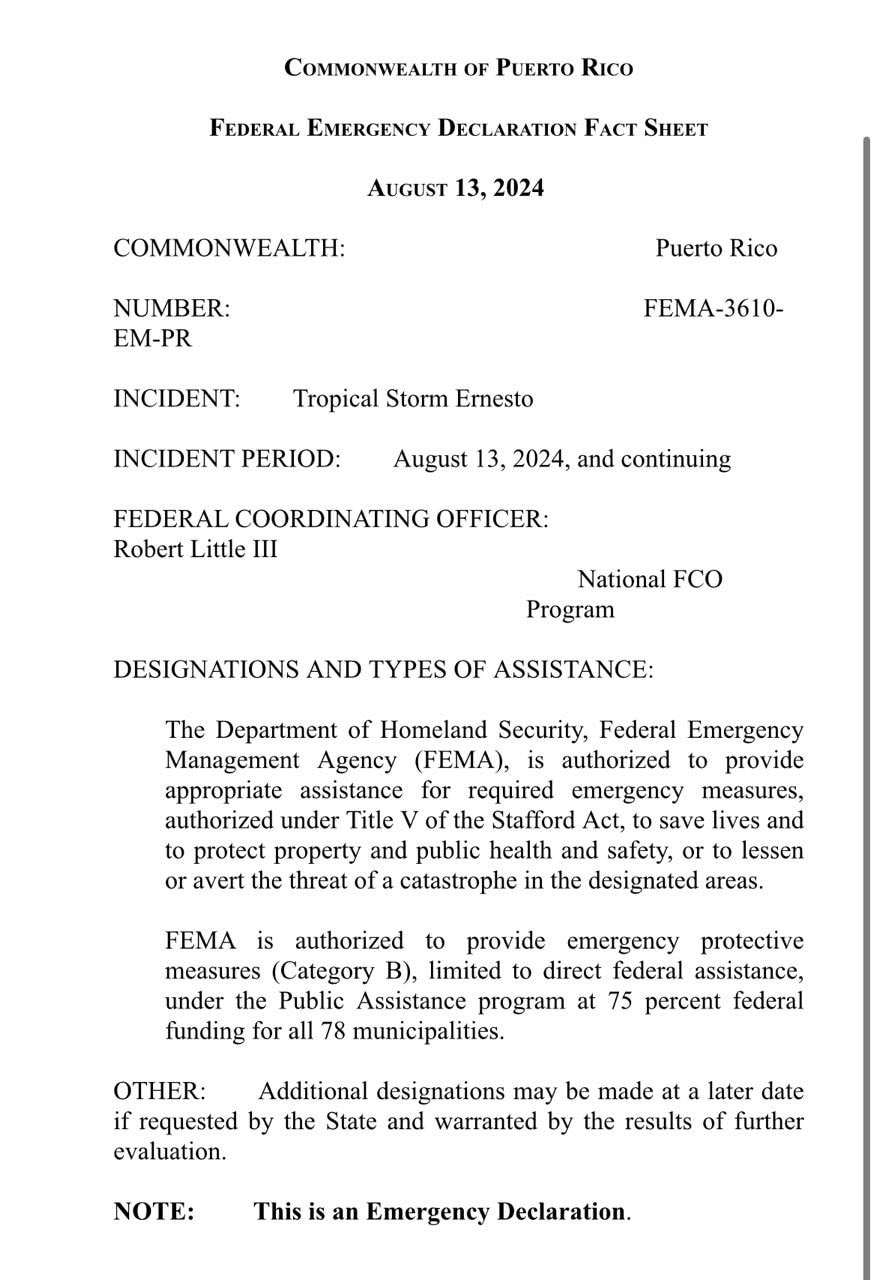 Con estos pasos en mente, el gobierno de Puerto Rico, junto con FEMA, se encuentra en una posición crítica para activar los mecanismos necesarios que permitan que las familias afectadas por Ernesto reciban las ayudas que necesiten. La situación se desarrolla rápidamente y es esencial que las comunidades afectadas estén conscientes de que aunque la ayuda federal está en camino, el proceso requerirá de algún tiempo y estrecha colaboración entre las diferentes agencias gubernamentales y federales.