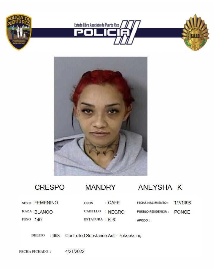 La copia de la ficha de arresto de la detenida, tomada el 21 de abril de 2022, la identifica como Aneysha K. Crespo Mandry de 28 años y residente de Ponce. Según las fuentes, se trata de la misma persona arrestada y que se aprecia en el vídeo viral en redes sociales.
