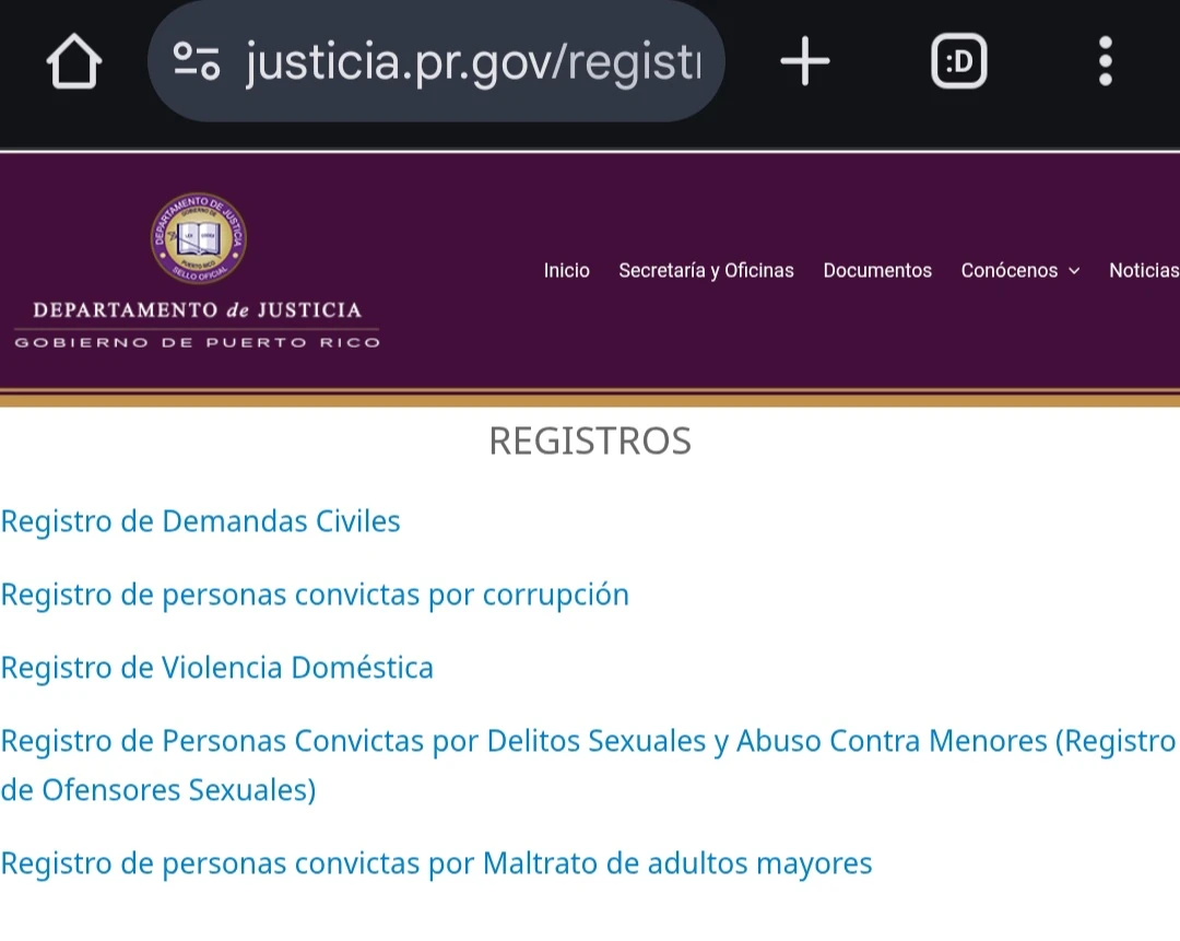 También incluye registros especiales como el de ofensores sexuales y el de convictos por corrupción pública, así como información de personas bajo supervisión pre-juicio o libertad condicional.