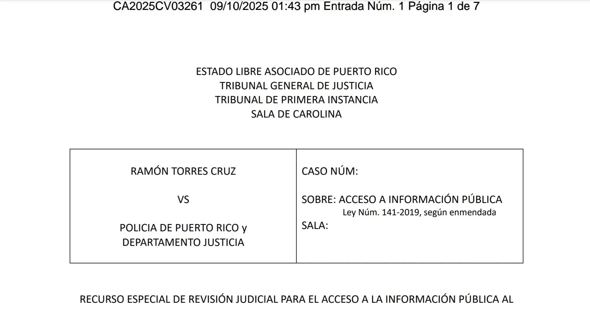 En su demanda, Torres resaltó que el derecho de acceso a la información pública ha sido reconocido en Puerto Rico como uno de rango constitucional, sustentado en las libertades de expresión, prensa y asociación garantizadas por la Carta de Derechos de la Constitución del Estado Libre Asociado de Puerto Rico.
