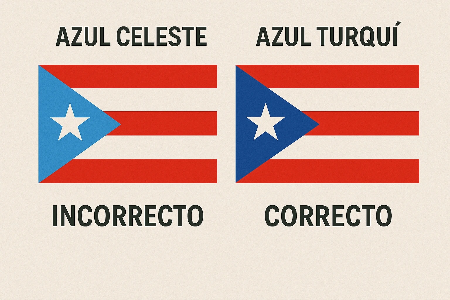 La bandera de Puerto Rico es azul turquí, no azul celeste