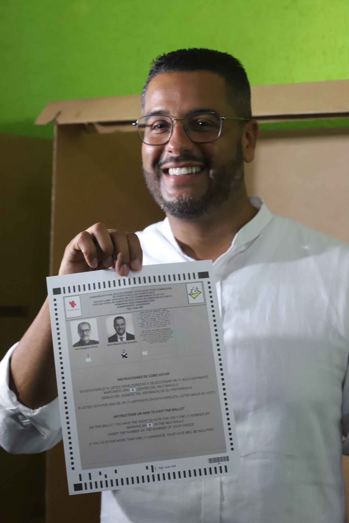 El representante Jesús Manuel Ortiz votó hoy en la escuela Aurora Waldorf en Cupey, en la primaria que enfrenta contra el senador Juan Zaragoza. Ambos buscan la candidatura a la gobernación por el Partido Popular Democrático.