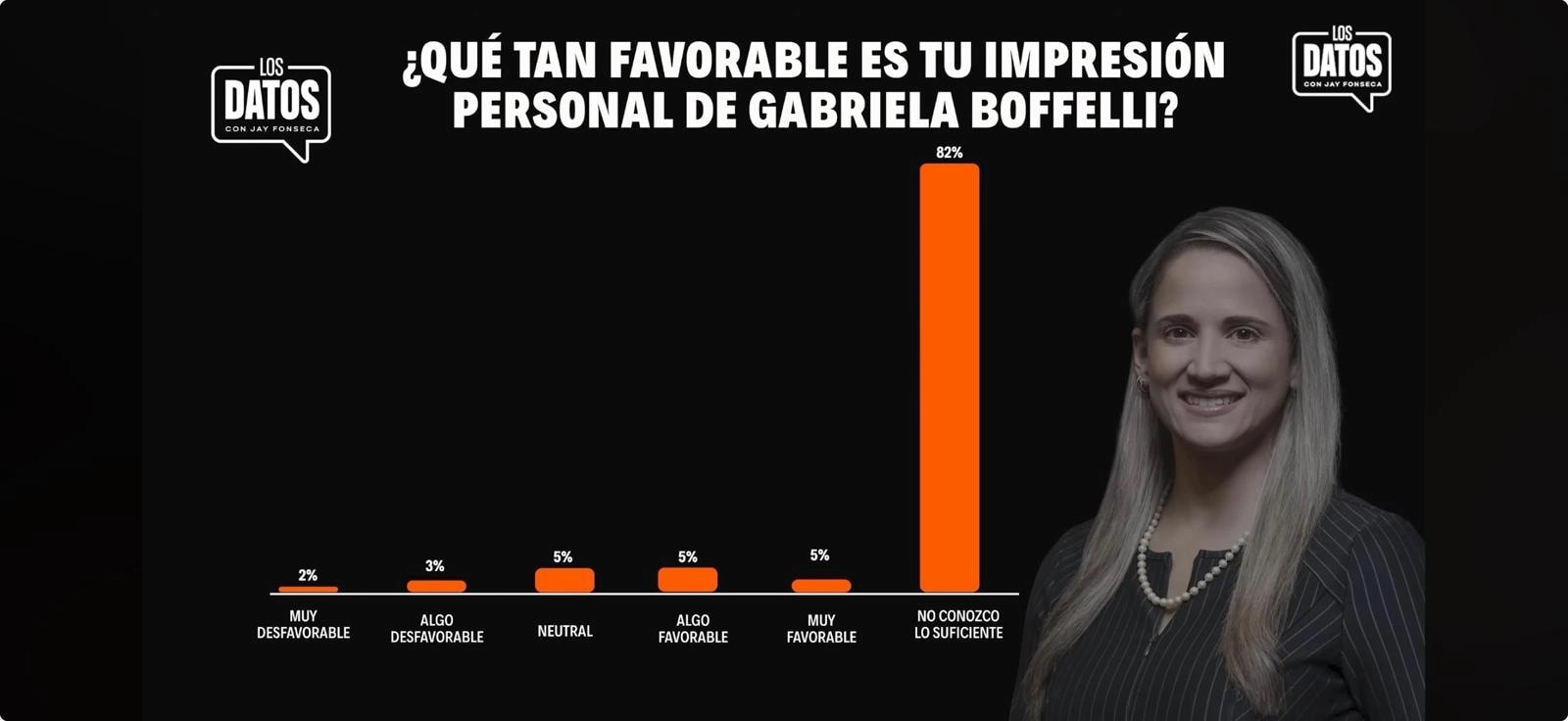 Ahora se suma Gabriela Boffelli, incluida por primera vez en una encuesta de Lit Data divulgada por Jay Fonseca en Los Datos. La pregunta del sondeo plantea un escenario hipotético: si las primarias del PNP para comisionado residente se celebraran en 30 días, por cuál de los candidatos votarían los encuestados.